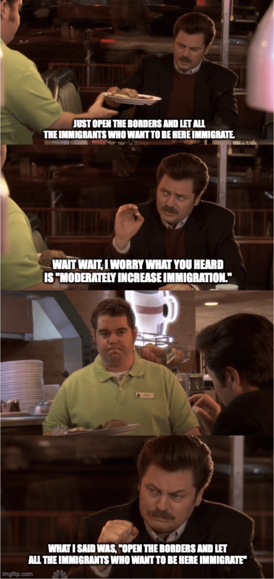 Strongly support immigration and Ron Swanson memes