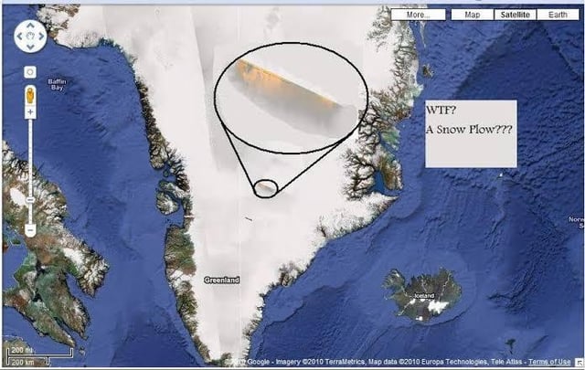 Greenland anomaly; google earth in 2005 shown colossal structure that too big for human capability