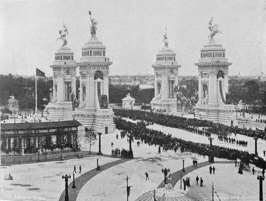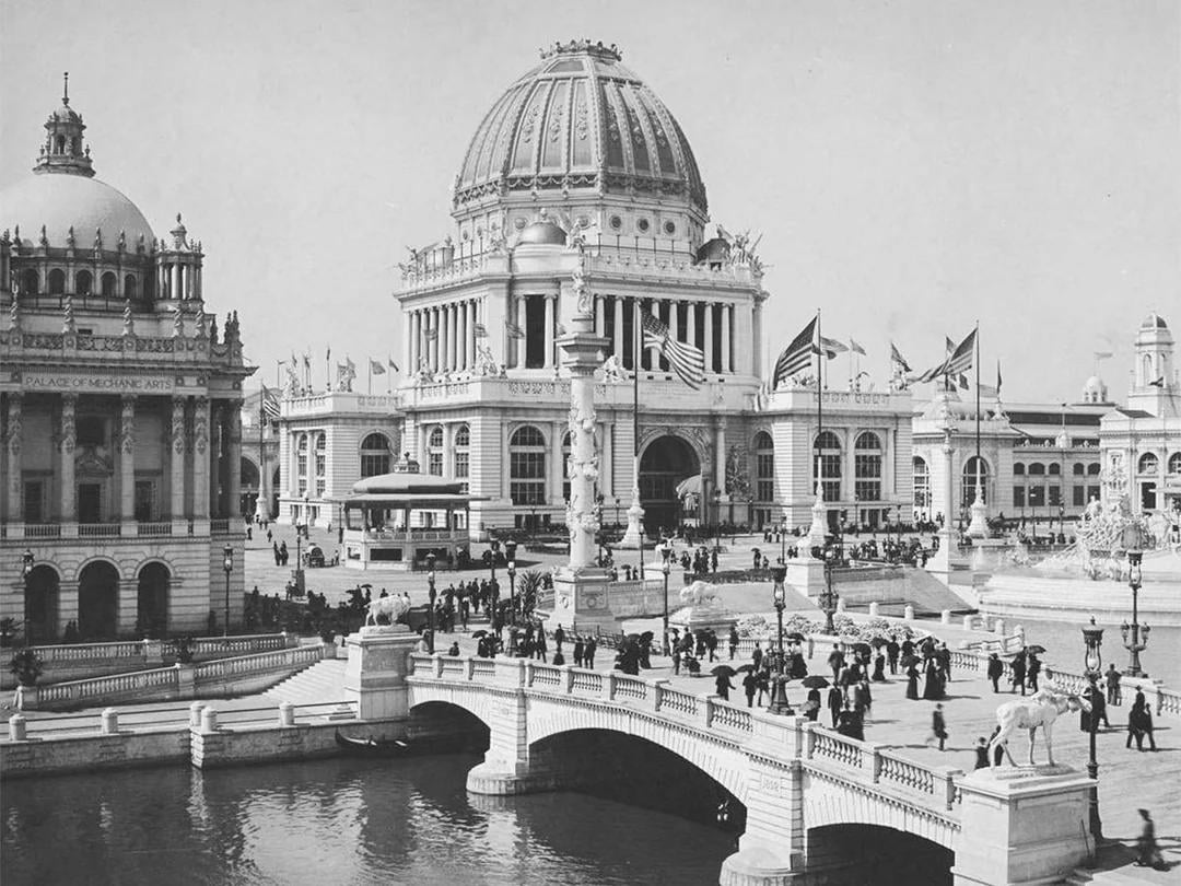 Wood and plaster, put up only for a party, millions of dollars lost, destroyed soon after. Only problem, some of the “temporary structures” are still standing over 100 years after. Chicago Museum of Science and Industry, there is a plauque i read my self when i was there. It dead ass says, “This building was originally constructed of crude material but it was so like, we replaced every piece, one at a time until the stone building remained.”