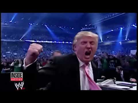 The post claims the July 2024 Trump rally shooting was staged and shares a video montage intercutting actual rally footage of the ear graze and Secret Service response with WWE clips of dramatic fist pumps.
