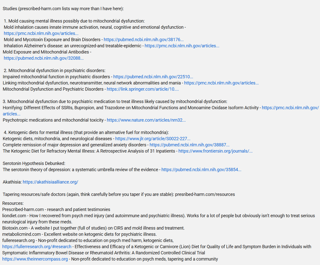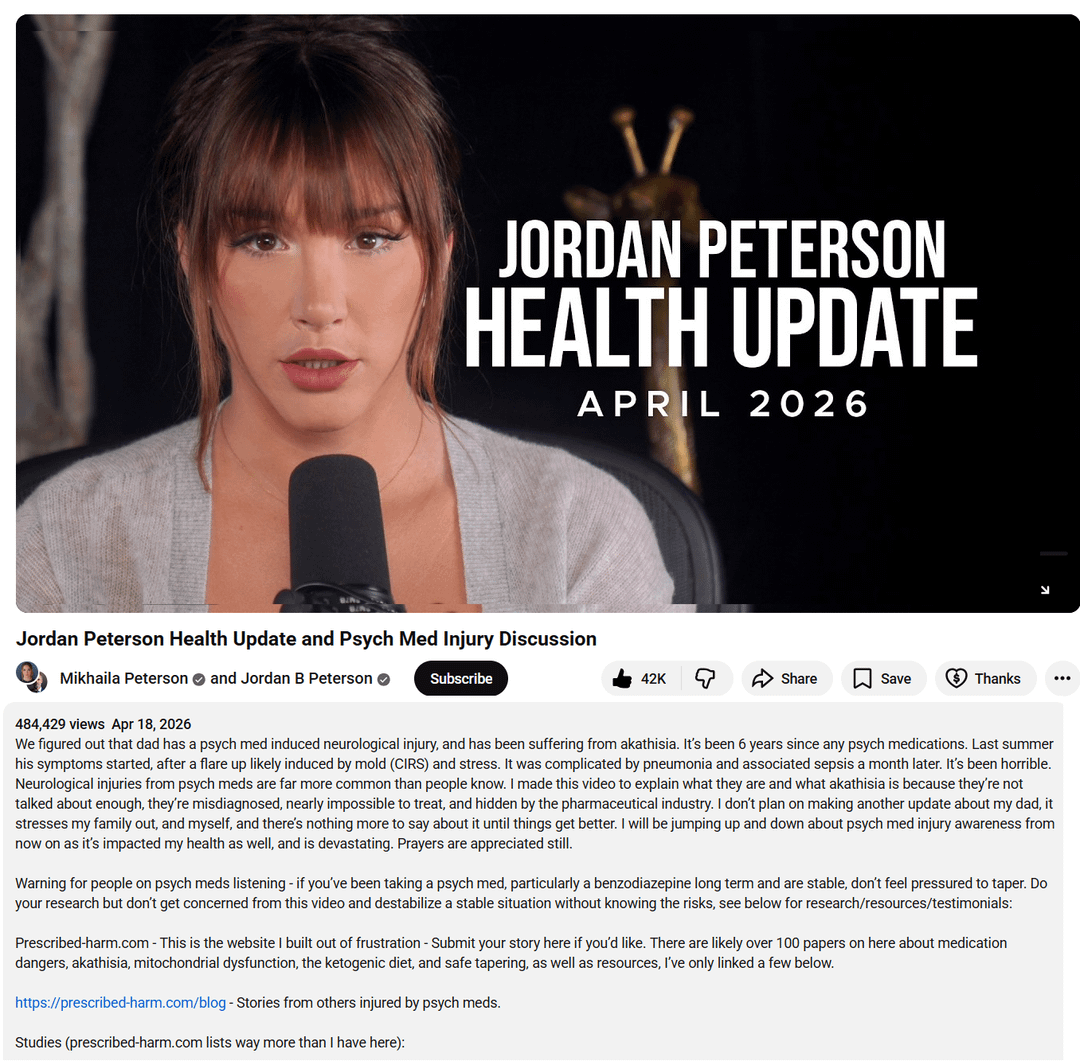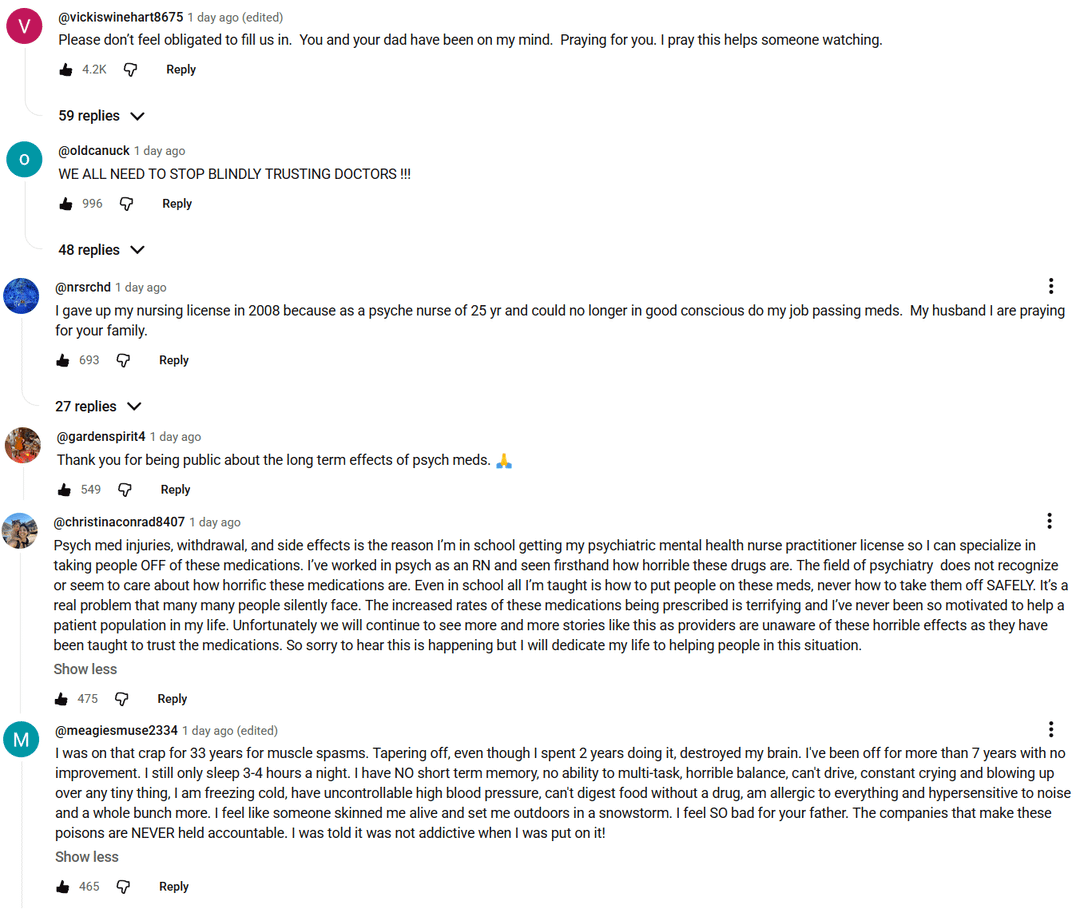 SS: Why does the medical establishment prescribe the public such harmful “medication”? We need to raise more awareness about the harm that they can inflict. [Link](https://www.youtube.com/watch?v=o9bzpDogoeo) to youtube video.