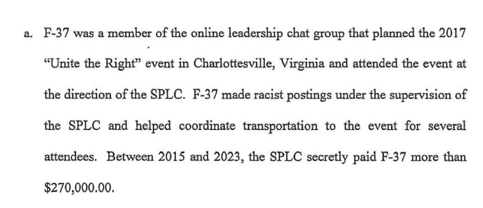 Just a couple examples, “a member of the online leadership chat group” – how many members did that group have? Was it just for leaders of the event? How many “leaders” were there? If this guy was just in a chat group of 200 people, how is that not typical of an informant? What did this “helped coordinate transportation” look like? That could mean anything from “here are directions to the event” to “we’ve organized busses from all over the country to reach the event.” What was the nature of these racist postings, where were they posted? I want to see the evidence, not this administration’s spin on it.