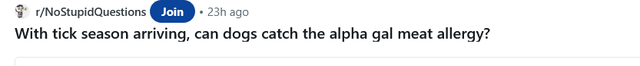 The fact that there is a bot scripted with this- replying 20 days after the fact- because I posted an unrelated question about alpha gal ('meat allergy') and dogs is your first piece of evidence, doubters.