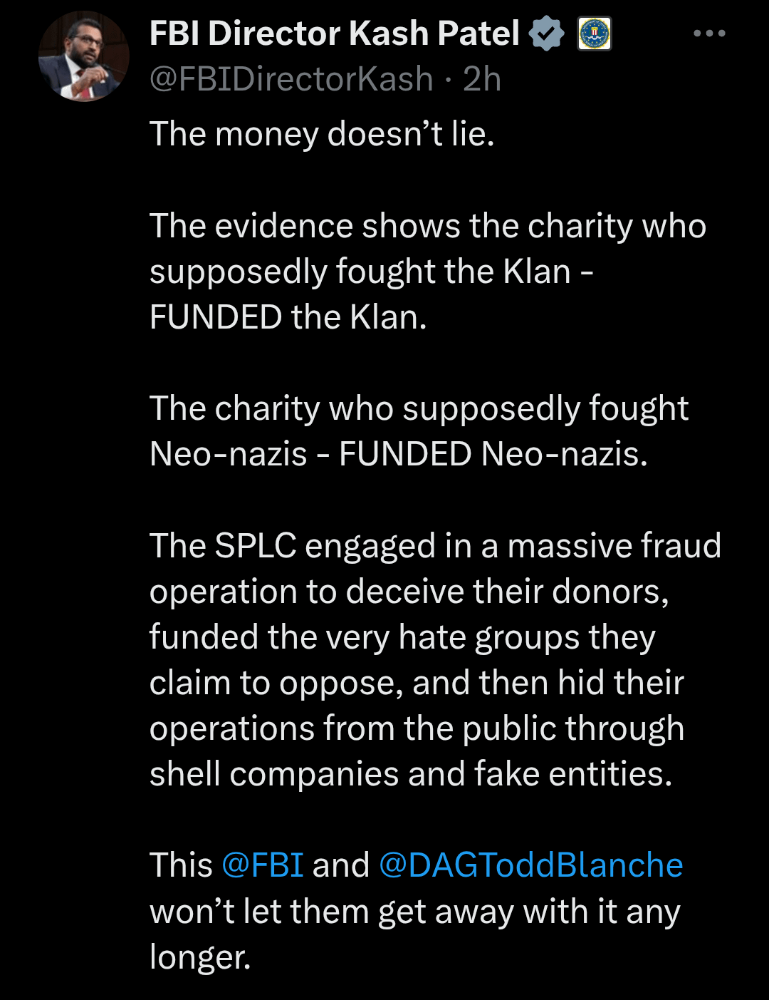 Kash Patel is far from bipartisan and far from ethical. He needs to address the Epstein file lies, he needs to address his girlfriend handler, and he needs to address his party boy reputation.