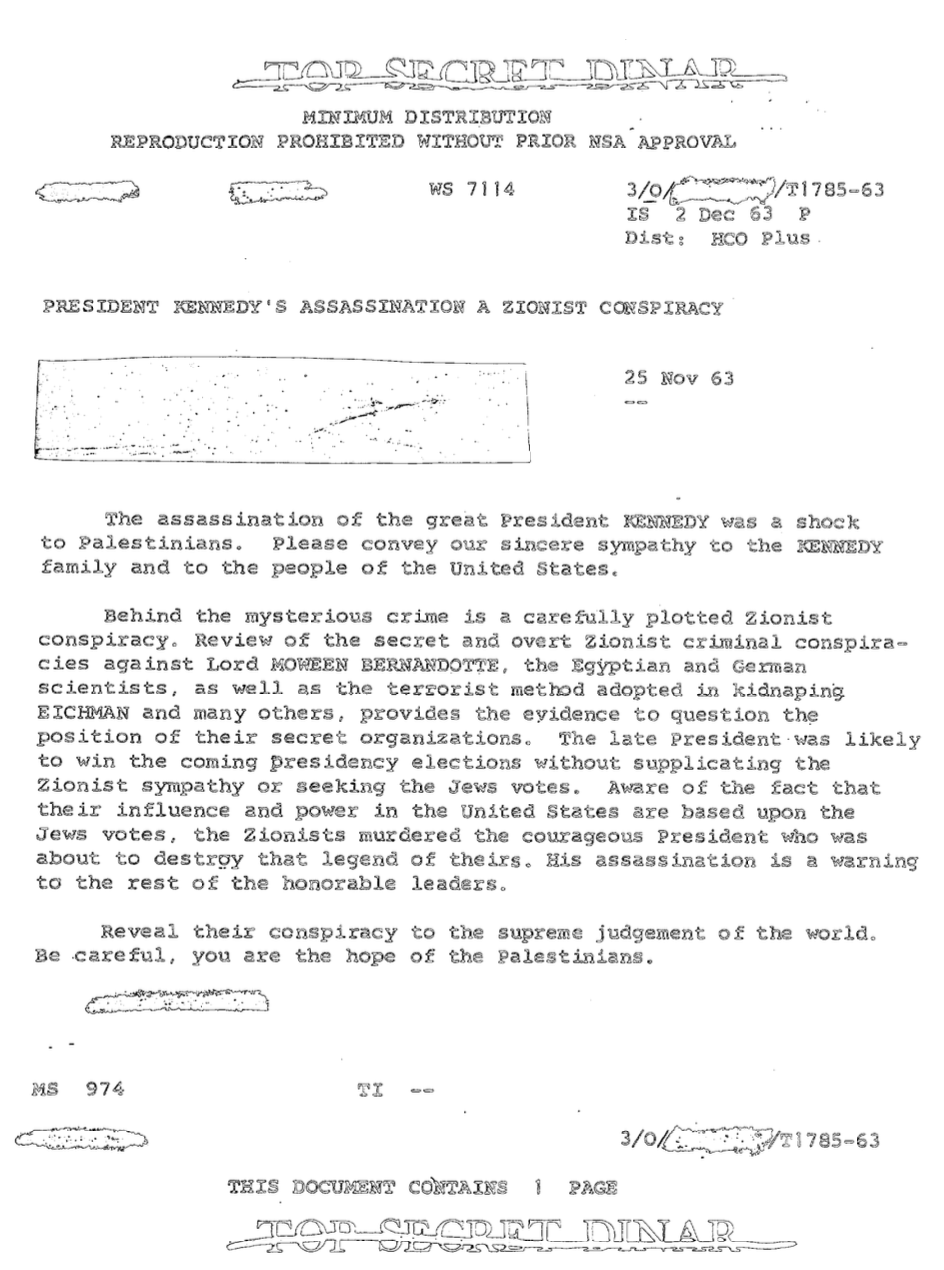 If we are to believe this letter, what hope would this bring to the Palestinians? Would connecting JFK's murder to Zionists stop Israel?