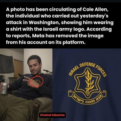 A photo has been circulating of Cole Allen, the individual who carried out yesterday's attack in Washington, showing him wearing a shirt with the Israeli army logo. According to reports, Meta has removed the image from his account on its platform.