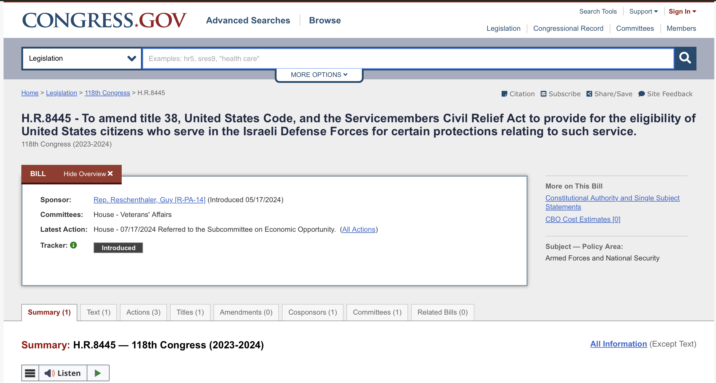 U.S congress introduced a bill to extend veteran benefits to IDF service members…We’re controlled Posted by Far_Pumpkin9440