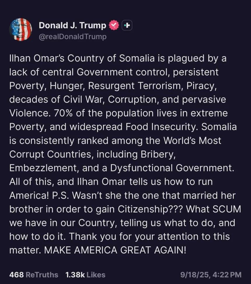 Pinot_Greasio on September 19, 2025 12:26 am Honestly go back to Somalia Illhan if it’s so terrible here.